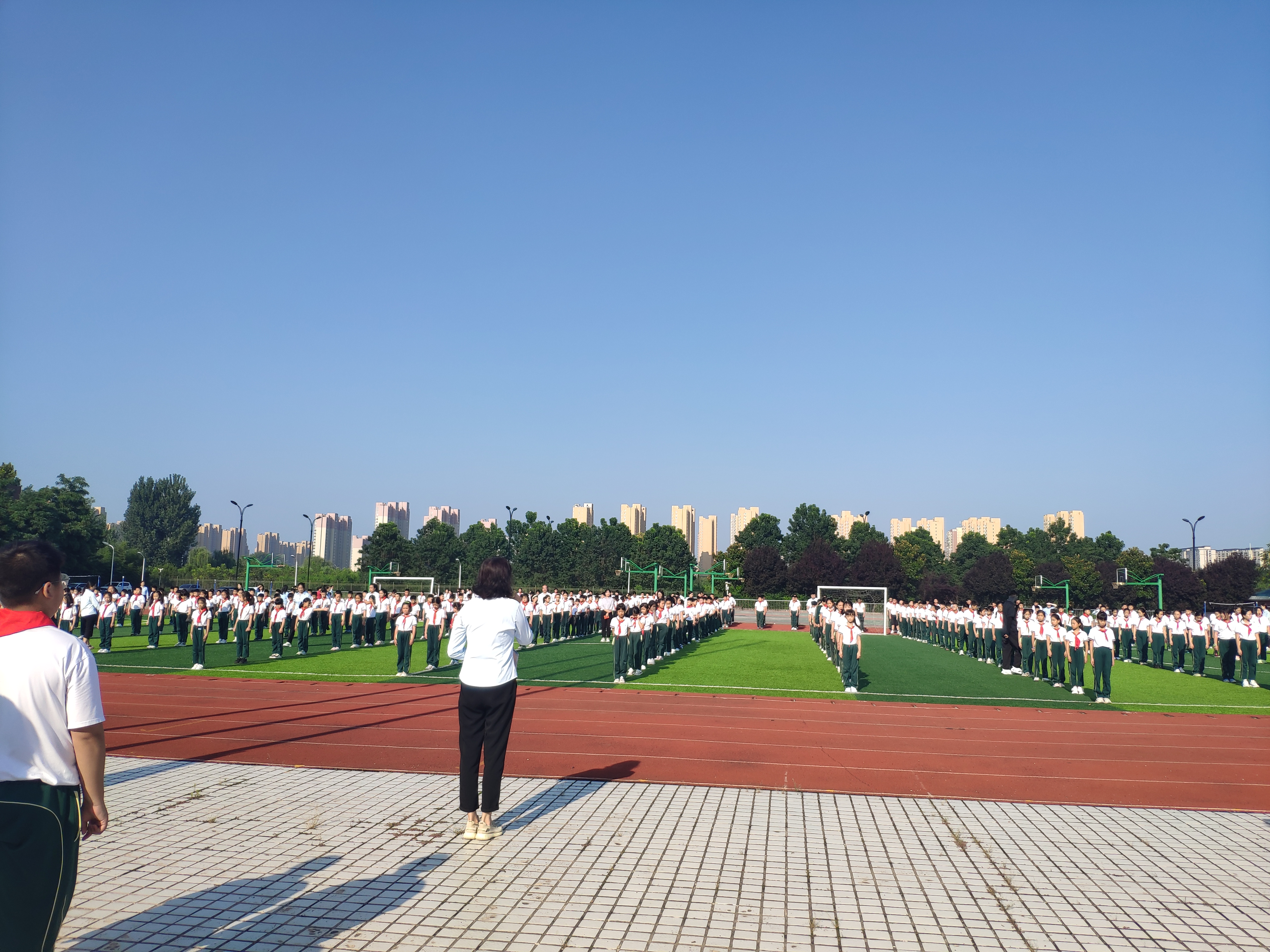 初小学部校长崔靓女士进行开学致辞,表达了对新同学的欢迎,展望了对新学年期望,希望全体同学奋发有为,为祖国的蓝图描上浓厚的一笔!