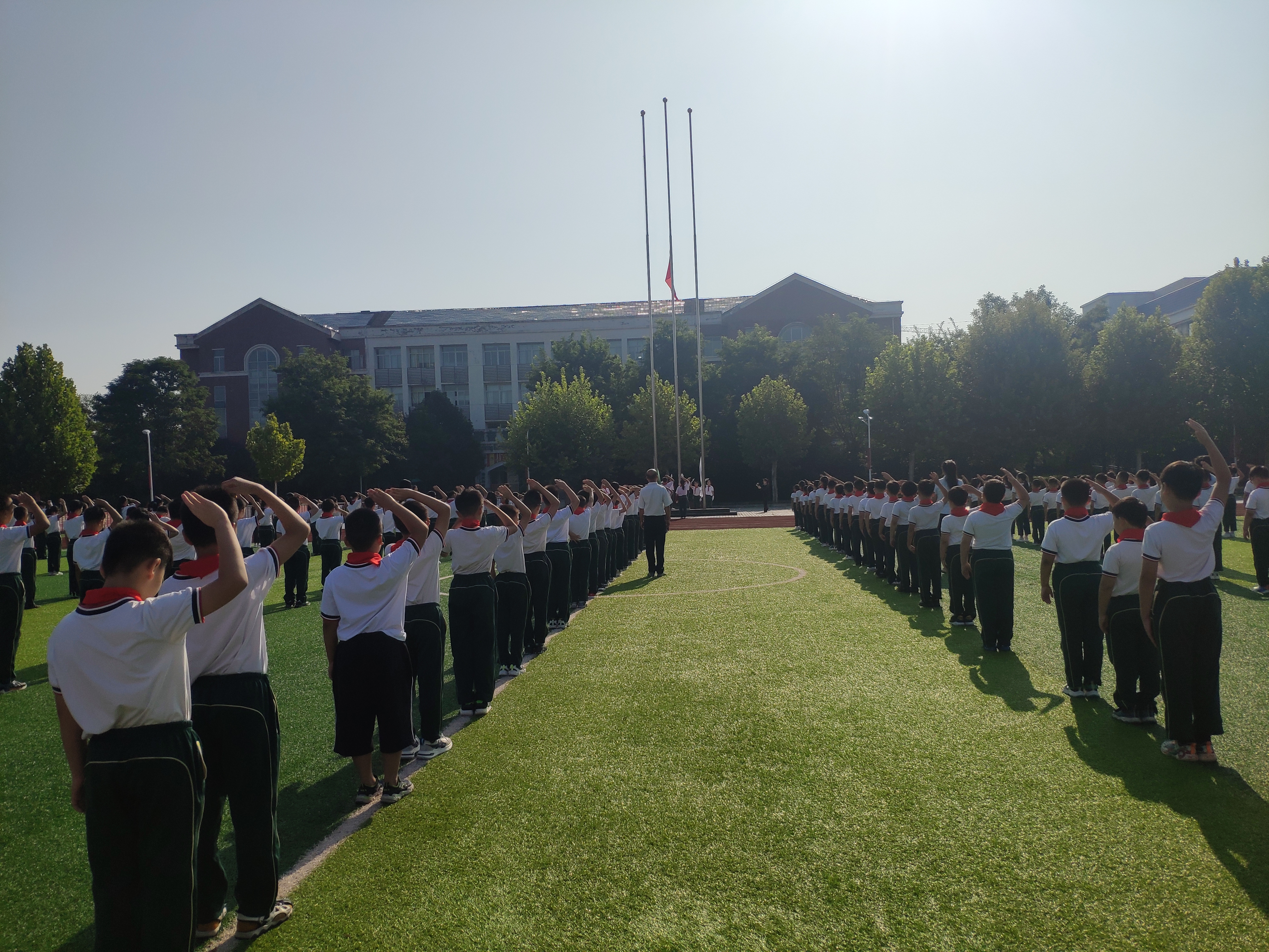 伴随着雄壮的义勇军进行曲,五星红旗在嘹亮的歌声里冉冉升起,迎风飘扬。全体师生以庄严的队礼、专注的眼神,怀揣爱和感恩,携着憧憬与希望,勇迈新征程!